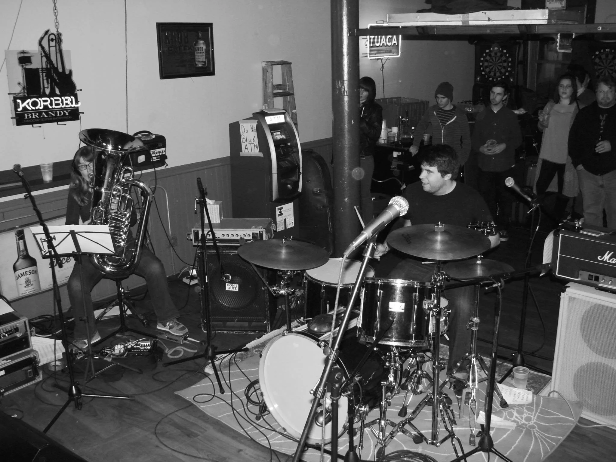 No Trust (formerly known as KJ) originated in Boston in 2012, emerging from a mildewy basement room with a long history of noisy happenings. No Trust is half Neal Markowski (drums, guitar, composition) and half Beth McDonald (tuba, electronics). The duo sits uncomfortably between a rock band and an free improv duo -- too obnoxious for galleries and a bit too weird for rock clubs. In addition to improvisation, NT makes noise and play cover songs -- Shadowy Men on a Shadowy Planet, MX-80 Sound, Oneida, the B-52s, etc.